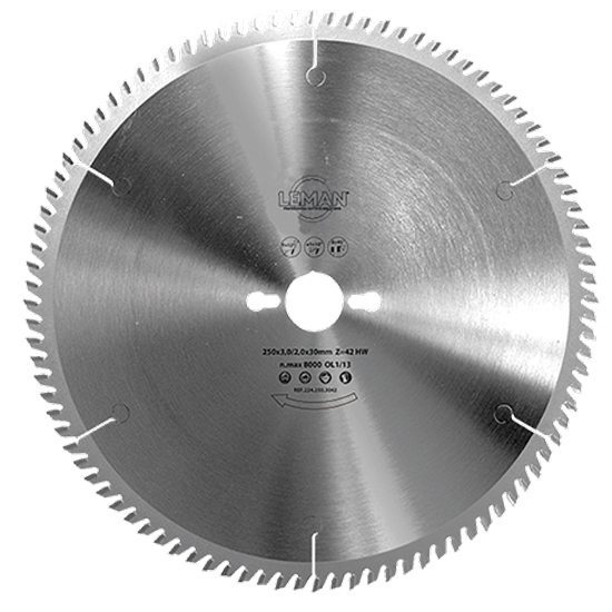 oja de sierra circular de carburo Leman para sierras de paneles. Diámetro de 315 mm y agujero de 30 mm. 72 dientes TP para madera laminada. Uso universal: corte longitudinal y transversal para maderas blandas, duras y exóticas, así como para MDF, paneles chapados por una sola cara o laminados.